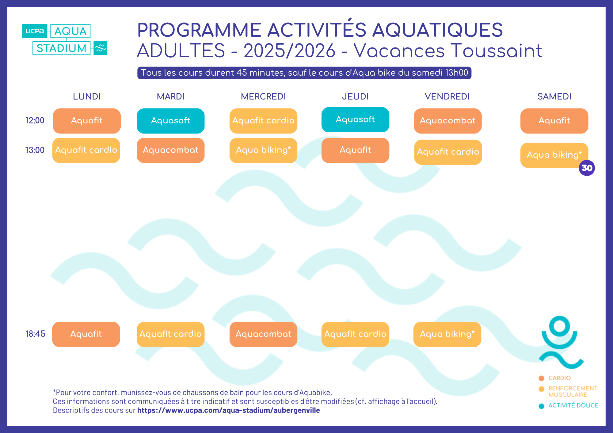 UCPA Aqua Stadium Les Bains de Seine Mauldre, c'est votre destination ultime pour une remise en forme aquatique optimale ! Nos cours d'aquagym et d'aquabike sont conçus pour vous offrir une expérience unique alliant plaisir et bien-être.