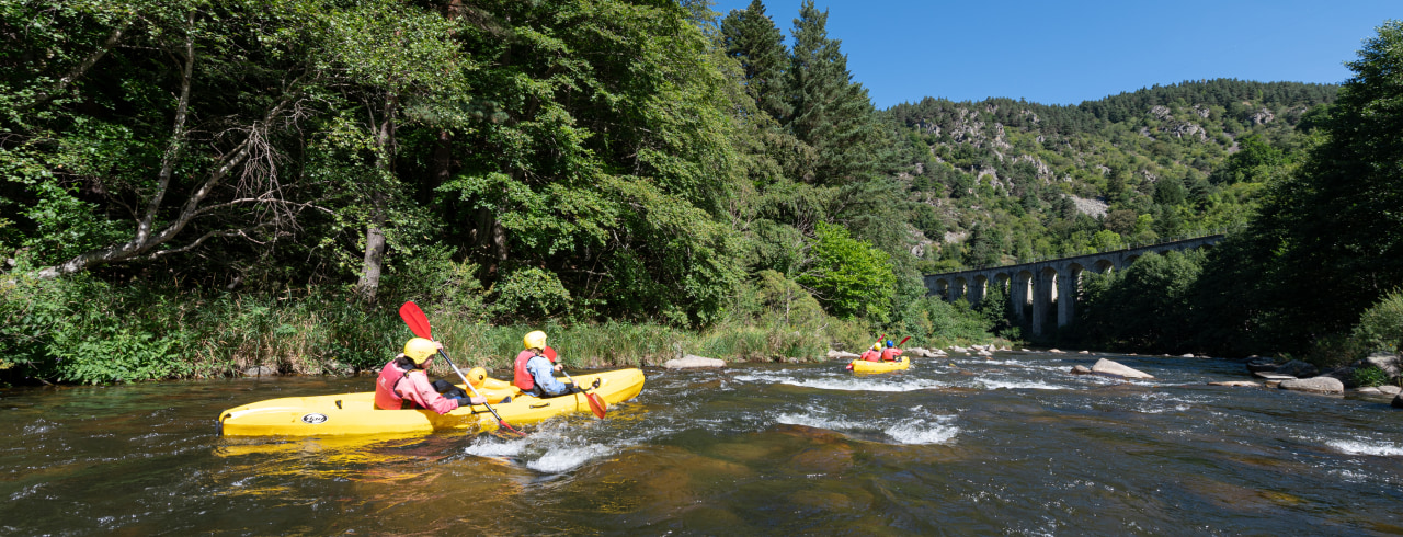 Samedi - Dernier petit déjeuner de la semaine. La remise des clefs s'effectue entre 9h et 10h. Une navette est assurée entre le centre et la gare de Langeac (à réserver) L'organisation du séjour: Prévoir duvet, tapis de sol et popote, sac d'affaire facilement transportable (valise rigide non recommandée) Le programme d'une journée type en randonnée itinérante : réveil entre 7 et 9h, petit-déjeuner, rangement du campement (affaires personnelles, tentes, etc.), activité sportive de plein air, déjeuner, arrivée sur un nouveau lieu de campement, installation du campement, ravitaillement, dîner. Des navettes acheminent les affaires personnelles et collectives d'étape en étape. Tu ne transportes que les affaires utiles pour la journée (gourdes, pique nique, crème solaire, coupe vent...) dans des bidons étanches (fournis) lors des activités nautiques ou dans des sacs à dos lors des activités terrestres. Sur les campements, il n'est pas toujours possible de se ravitailler. Certains villages traversés sont isolés et n'ont pas de commerces. La carte bleue est largement acceptée. Le déroulement de ce programme est donné à titre indicatif. Il peut subir des modifications ou des aménagements, en fonction des critères techniques, des impératifs de sécurité ou des conditions climatiques du moment. Dans ce cas, seuls les responsables de l'encadrement UCPA sont habilités à prendre la ou les décisions nécessaires. Il peut aussi être adapté selon le niveau technique et physique des participants.