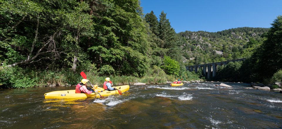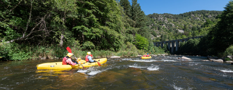 Lundi - De Prades à Langeac. Début de l’itinérance avec une première journée entre initiation et descente sur l’Allier. En kayak 1 ou 2 places, parcours de 14km. Arrivé à Langeac, transfert en train par la ligne Cévenol jusqu'à Chapeauroux. Nuit au camping de chapeauroux.