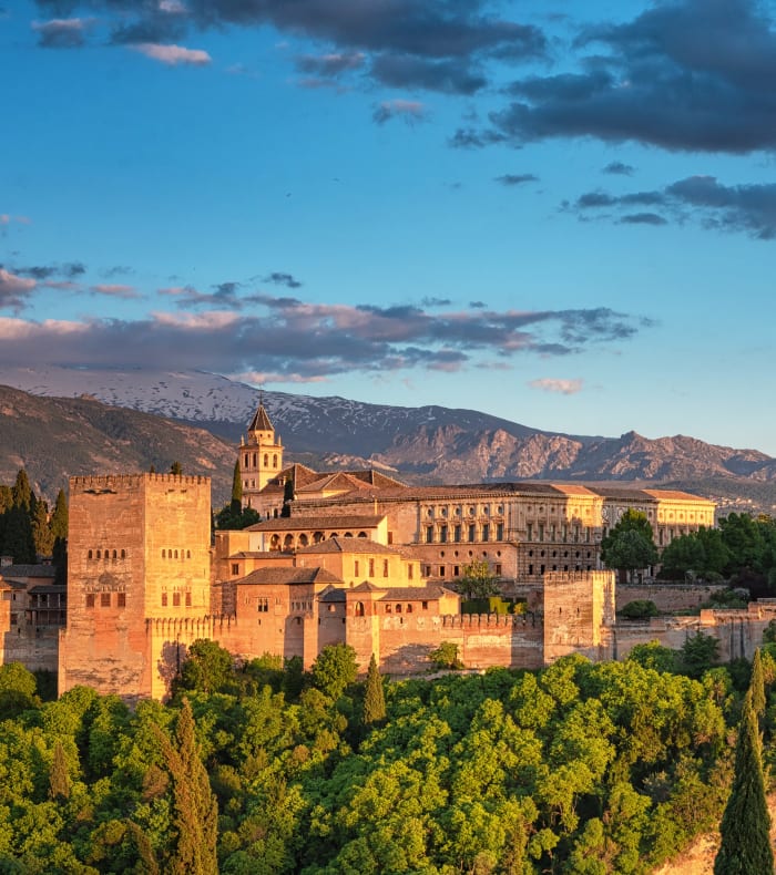Visite de l'Alhambra, palais des rois maures du royaume de Grenade universellement connu : tout le raffinement de la civilisation arabe est concentré dans ses bâtiments finement décorés, ses cours et ses jardins fleuris. Promenade dans le cœur du Sacromonte et de l'Albaycin. Transfert en bus public au village blanc de Trevélez, dans les Alpujarras : pays jadis inaccessible qui fut le dernier bastion de la population maure de Grenade. Trevélez est situé à 1750 m d'altitude et peut se vanter d'être le plus haut village d'Espagne. Il est célèbre également pour ses délicieux jambons.