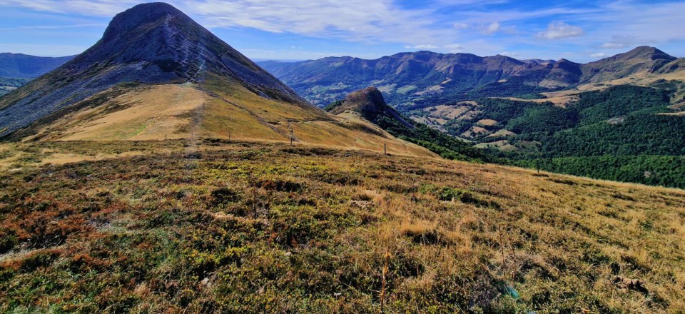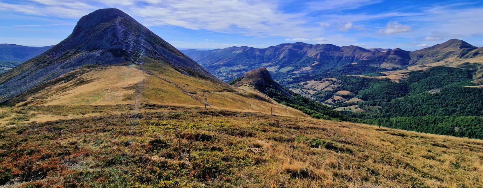 Après l’échauffement de la veille et une bonne nuit au gîte, nous partirons pour une magnifique étape en montagne. Tout d’abord nous monterons vers la coulée basaltique de Cabrespine et là-haut nous pourrons discuter volcanisme. S’ensuivra un magnifique parcours en crête via le Puy Chavaroche (1736m) et surtout le Puy Mary (1783 m) que nous gravirons de manière originale en traversée. Les spots pour manger les pique-niques que nous tirerons du sac ne manqueront pas. La suite sera tout autant sublime en passant la fameuse brèche de Rolland qui domine le cirque glaciaire d’Eylac. Et enfin, nous atteindrons le col de Cabre puis celui de Rombière (1552 m) avant de « plonger » jusqu’au buron de Meije Costes où nous serons accueillis par le gardien Anthony, sûrement déjà occupé à nous préparer sa réputée truffade... Repas et nuitée sur place (en dortoir). Distance : 14 km - Temps d'activité : 8 heures - Dénivelé : 1100 m