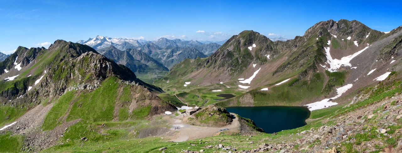 Depuis le refuge, nous suivons un parcours sauvage et loin des foules, direction le col de la Couradette, qui sera notre unique portion en montée de la journée. La suite se fera en descente, tout en douceur, pour quitter progressivement cet univers minéral de haute-montagne et rejoindre les prairies verdoyantes, jusqu'à Payolle. En chemin, de très beaux "courtaous", petits regroupements de cabanes en altitude formant de tous petits hameaux, dans lesquels vivaient autrefois les éleveurs durant la période estivale. Aujourd'hui, la plupart des cabanes sont en ruines, mais certaines ont été remarquablement restaurées (l'exemple type est celui du Courtaou des Esclozes). L'arrivée à Payolle conclut cette petite itinérance de 2 jours, transfert jusqu'à Sainte-Marie de Campan pour regagner le gite !