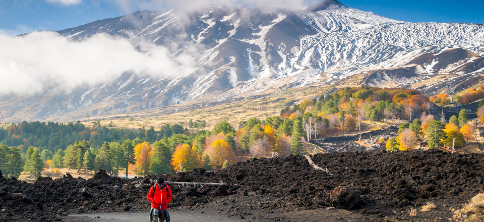Magnifique journée de randonnée pour découvrir une facette originale du volcan! Après un transfert privé vers le refuge de Citelli à 1740m d'altitude, vous commencez votre randonnée par un sentier au coeur d'une forêt de bouleaux, vestige de l'époque glaciaire. Le paysage s'ouvre ensuite sur une petite vallée, où se niche la grotte de Serracozzo, tunnel de lave formé lors de l'éruption de 1971. Poursuite de la montée jusqu'à un belvédère à 2095 mètres, offrant une vue imprenable sur la Valle del Bove et ses remparts magmatiques surplombant parfois des falaises hautes de 1000 mètres. Le retour se fait par une crète panoramique à 2150 mètres, avant de retrouver le chemin principal. Retour à votre refuge en fin d'après-midi. Dîner sur place.