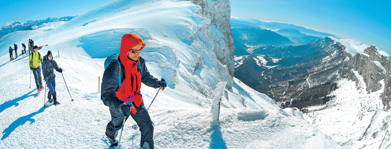 Pour cette seconde journée de raid, après avoir cheminé dans le désert blanc, nous contemplerons les massifs du Dévoluy, des Ecrins et de Belledonne du sommet de Montaveila qui domine la plaine de la Queyrie. Longeant le pied du Grand Veymont en espérant le rendez avec les bouquetins, nous atteindrons la Maison forestière de Pré Grandu. Soirée autour du feu. Distance 17km.