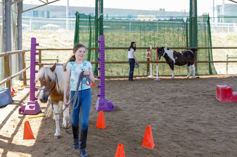 - Ateliers découverte du poney : Apprentissage du pansage et premiers contacts avec les poneys.