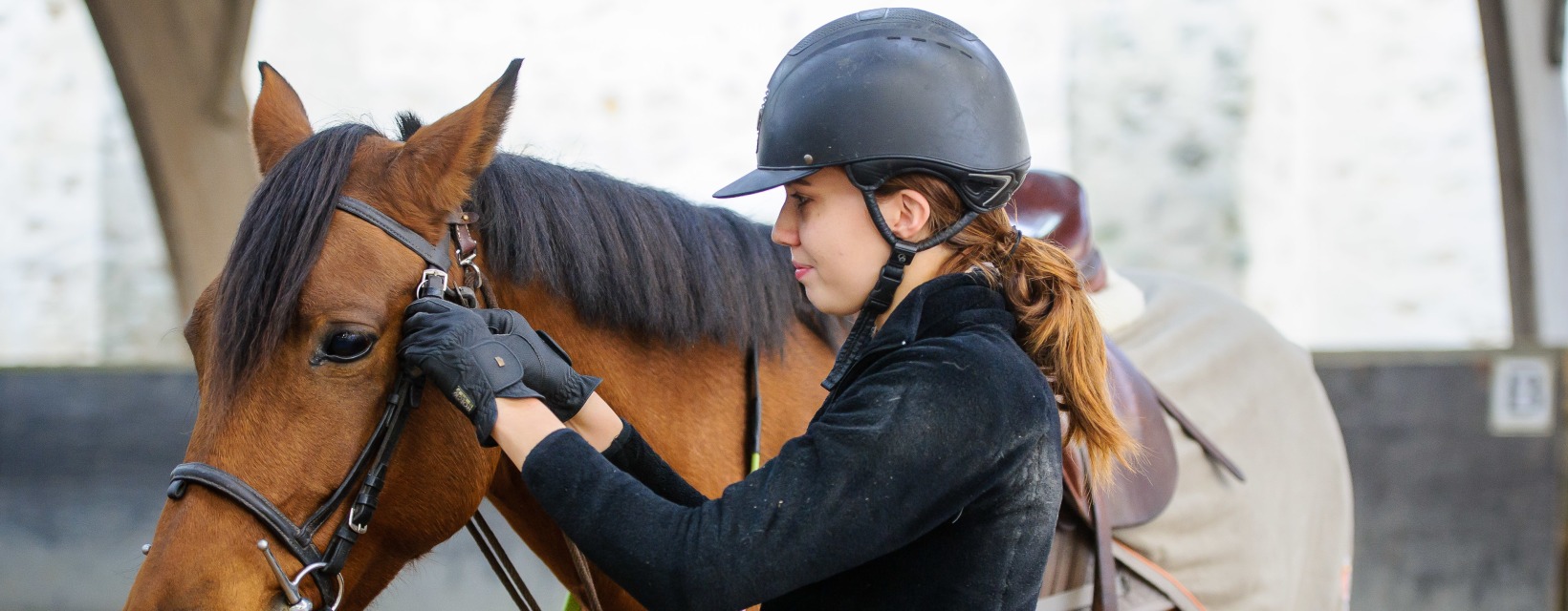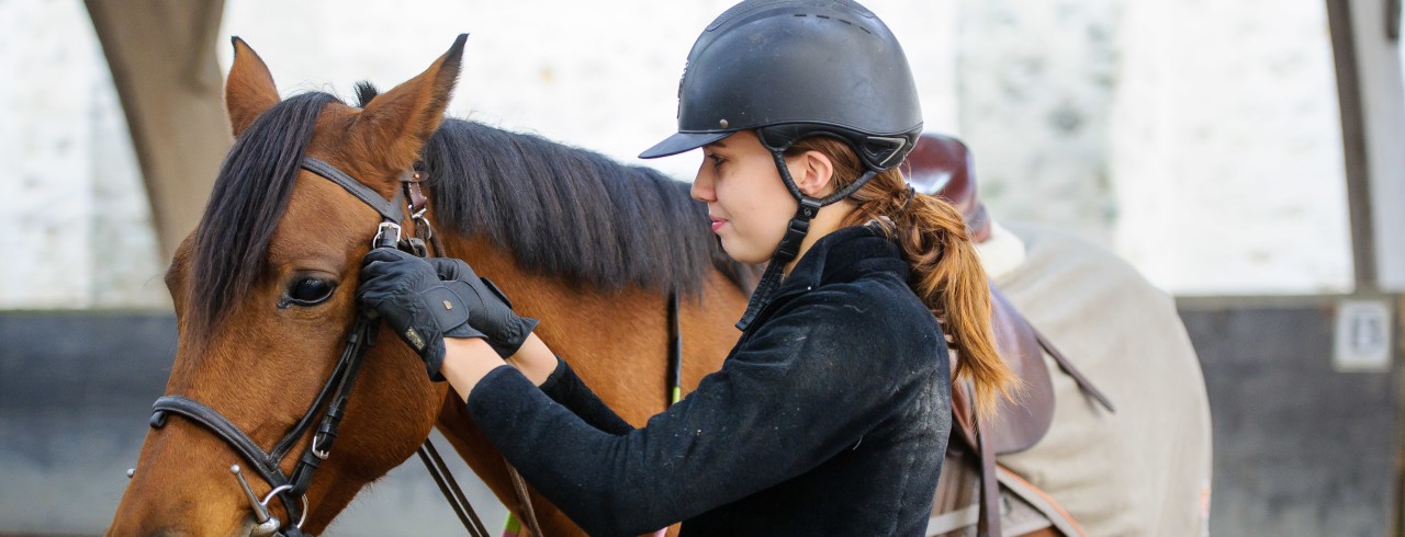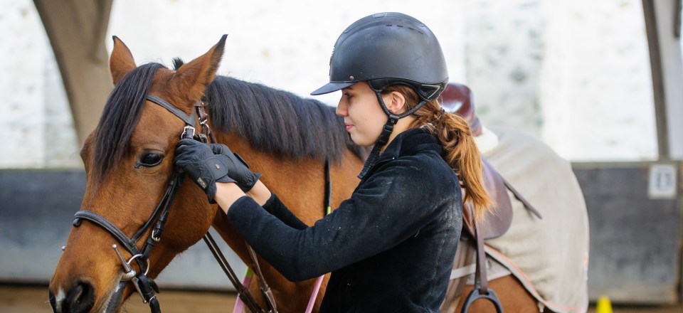 Le port de la bombe ou d’un casque attache 3 points - norme européenne EN 1384 - est obligatoire. Le port des bottes ou de mini-boots montantes avec des mini-chaps est conseillé. Le port d’un protège-dos est recommandé au cours des séances d’obstacles, il est obligatoire pendant les sessions de cross. Le port d’un pantalon long et souple - idéalement « culotte de cheval »- est conseillé. Les jeans sont à éviter en raison des risques de blessures aux genoux.