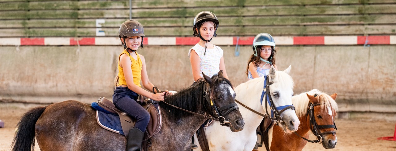 Au Centre équestre de Montpellier-Grammont, nous proposons des baptêmes, des séances d'essais et des cours d'équitation pour enfants dès l'âge de 3 ans, que ce soit à shetland ou à poney, pour un apprentissage progressif et sécurisé.