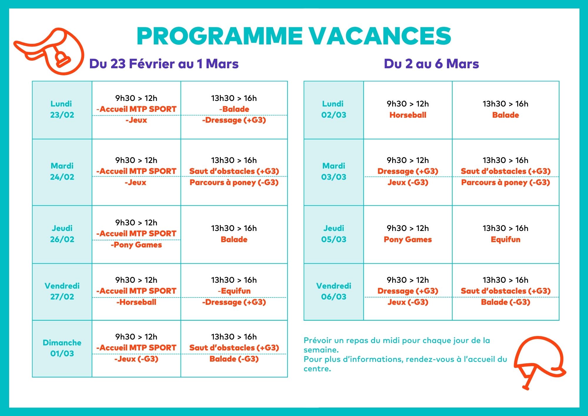 🗓️ DATES & HORAIRES DES STAGES