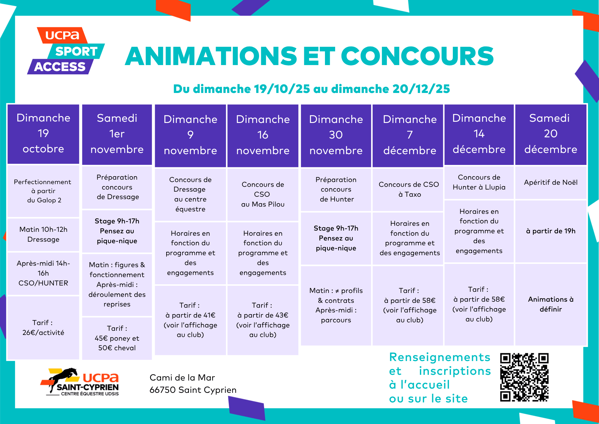 Participez à nos animations d'octobre, de novembre et de décembre : perfectionnement, préparation concours, concours, apéritif de Noël...