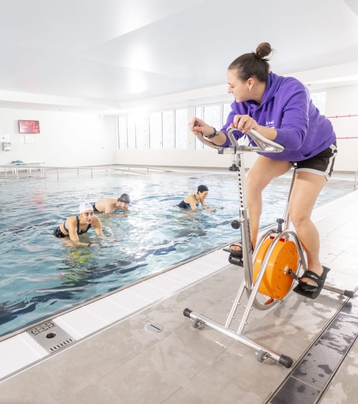 - Des cours variés d’aquafitness, comme l’aquagym, l’aquabike et l’aquasoft, pour améliorer votre condition physique en douceur
