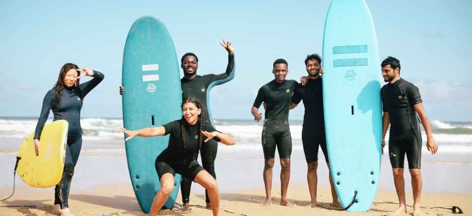 Tu as 4 séances durant le séjour, avec une session le matin ou l'après-midi selon le planning, les marées et les conditions de vagues. Tu apprends ou révises les bases ainsi que les règles de sécurité. Les séances sont construites dans le but de favoriser ta progression individuelle au sein d'une dynamique de groupe positive. Le matériel est choisi et adapté en fonction de ton niveau.