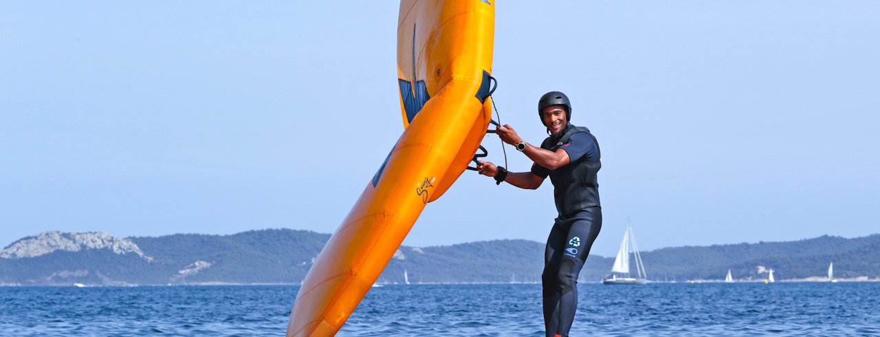 Pure sport/Venez découvrir ou vous perfectionner au wingfoil sur le spot de Marseille.Que vous soyez débutant ou déjà d'un bon niveau, vous profiterez de ce séjour Wingfoil pour progresser et vous faire plaisir. Nous optimisons le rythme de ce séjour profiter au mieux des conditions météos. Votre moniteur en bateau moteur vous emmène et vous fait évoluer toujours sur le bon spot entre la Pointe Rouge et les îles du Frioul. Pour les débutants vous découvrirez: le maniement de l'aile, l'équilibre sur la planche et son positionnement par rapport au vent, puis les premiers vols. Pour les niveaux plus avancés, vous pourrez tester différents matériels pour progresser dans les jibes, les virements de bord, et lorsque que le mistral souffle surfer sur la houle.