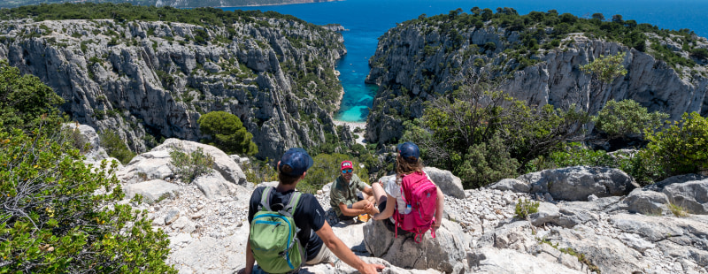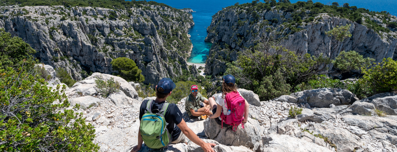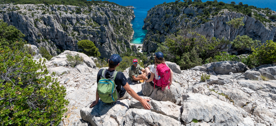 Pour cette première après-midi, direction le tour de la calanque de Sormiou en passant par le Baou Rond, le vallon des Escourtines , le plan de Miette et le col de Sormiou. L'occasion ici de commencer à découvrir les points de vue magnifiques qu’offrent les Calanques.