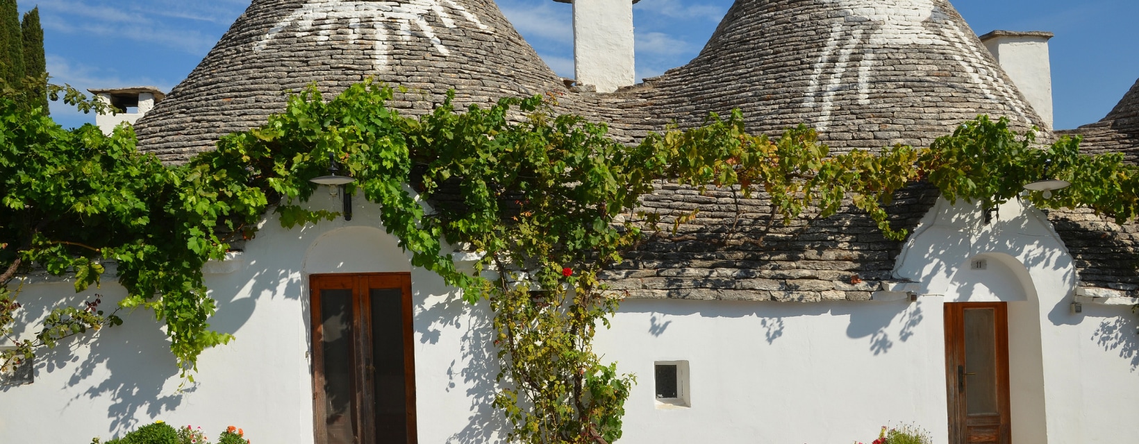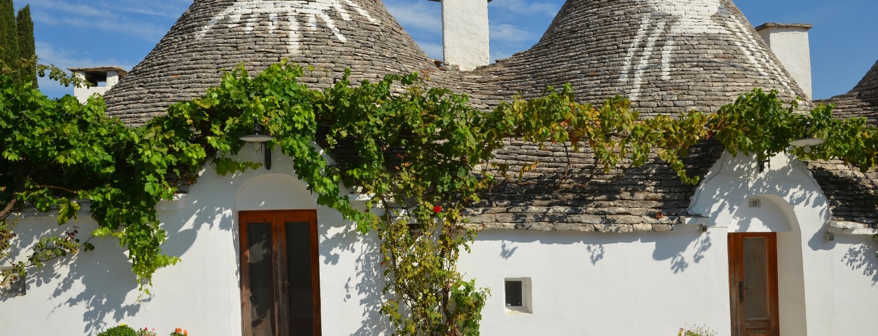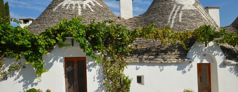 Les Trullis d'Alberobello sont des habitations remarquables de la région des Pouilles, en Italie du sud. Construites en pierre sèche traditionnelle, avec un toit en encorbellement conique, ces huttes sont principalement utilisées comme habitations temporaires ou permanentes dans la Vallée d'Itria, entre les provinces de Brindisi, Bari et Tarente.