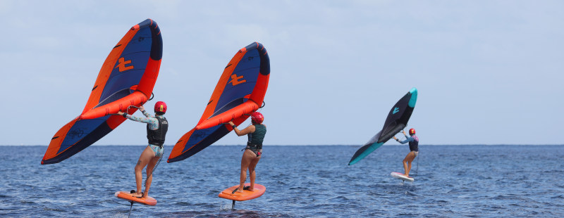 L'après-midi, séance de wing et utilisation du foil pour découvrir la sensation de voler au dessus de l'eau.