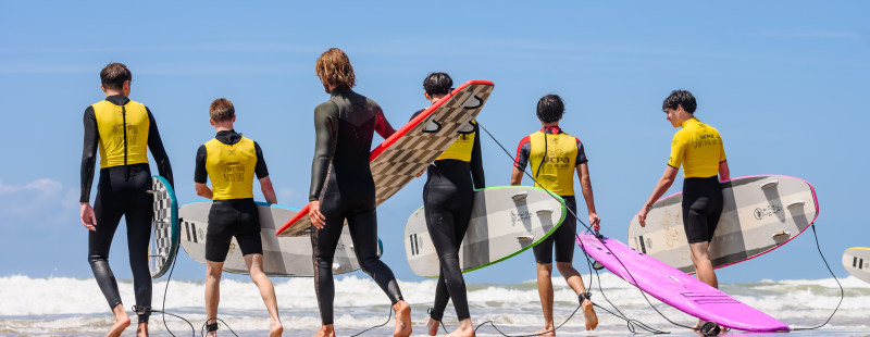 Sport' Camp/Ce séjour d’une semaine à Vieux Boucau s’adresse à des adolescents de 14 à 17 ans qui souhaitent pratiquer le surf et découvrir le sauvetage côtier, au cœur de la côte landaise.Au programme : 4 séances de surf + 3 séances de sauvetage côtier (dont 1 séance de formation en salle pour passer le diplôme de secourisme intitulé "Les gestes qui sauvent") + animations, veillées, grands jeux ou ateliers manuels et créatifs.