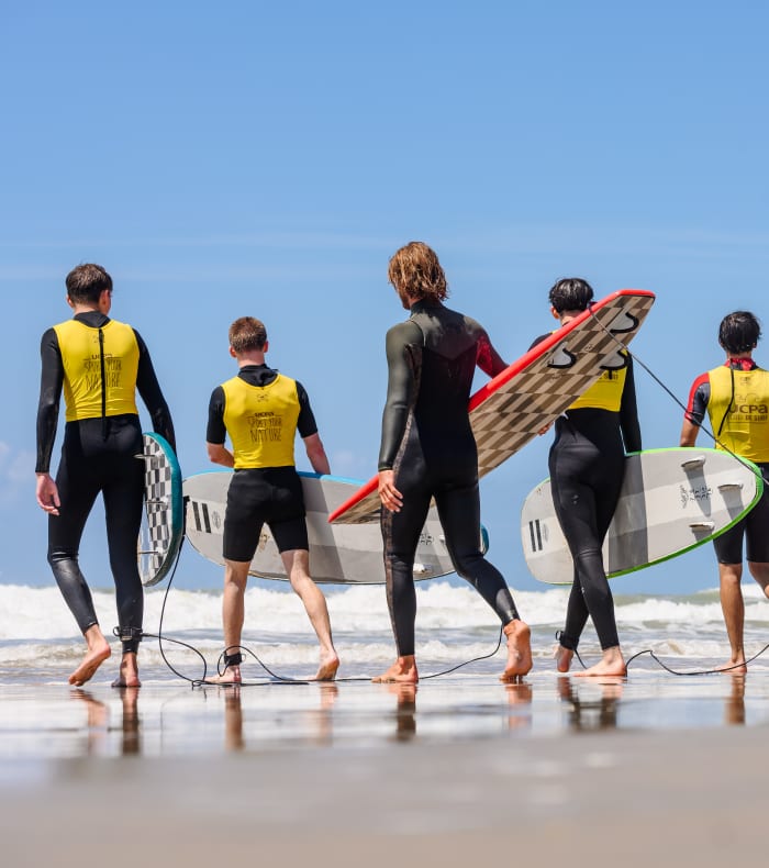 Sur la plage de Vieux Boucau, les adolescents s’initient au surf et progressent dans les vagues, et découvrent les bases du sauvetage côtier : lecture de l’océan, techniques d’intervention et esprit d’équipe. La formation “Les gestes qui sauvent” donne aux jeunes des compétences concrètes et utiles, applicables bien au-delà du séjour.