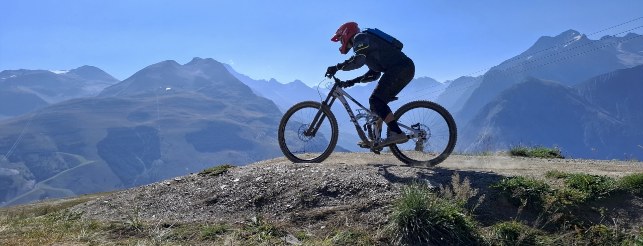 Pure sport/Stage vtt de descente en plein temps, conçu pour tous les niveaux de pratiques, pour des personnes sachant faire du vélo qui souhaitent découvrir ou se perfectionner sur des pistes de vtt de descente sur la station des Deux Alpes. Deux zones d'initiation dans la station, pistes vertes et bleues aménagées pour progresser et se faire plaisir en sécurité, vous pourrez aussi rouler sur des pistes célèbres comme Diable ou 666 pour les plus confirmés!LES TOPS DU PRODUIT