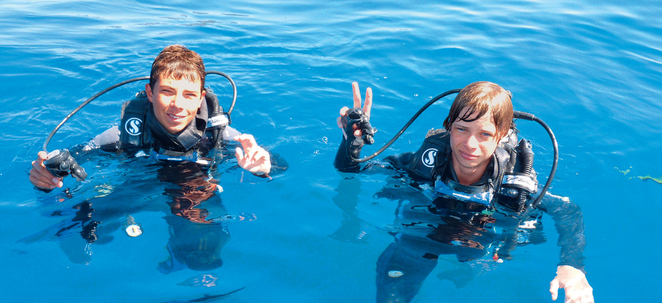 Le matin et l'après-midi, séances techniques d'apprentissage de la plongée en bouteille : se familiariser avec l'équipement, gérer sa respiration, stabiliser sa flottaison dans l'eau.