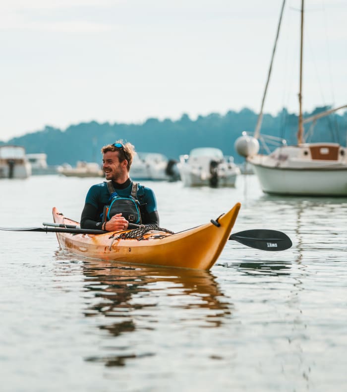 La matinée débute du kayak dans l'estuaire de la Rance. Vous découvrirez un écosystème unique où se mêlent eau douce et eau salée, créant une biodiversité exceptionnelle.
