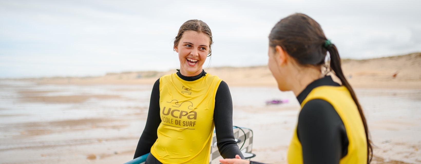 Sport' Camp/Ce séjour surf d'une semaine est conçu pour les 14-17 ans. Il permet de débuter ou de progresser en surf avec les conseils personnalisés de pros.Au programme : 5 séances de surf + 1 sortie aquapark + 1 sortie accrobranche + animations, veillées, grands jeux ou ateliers manuels et créatifs.