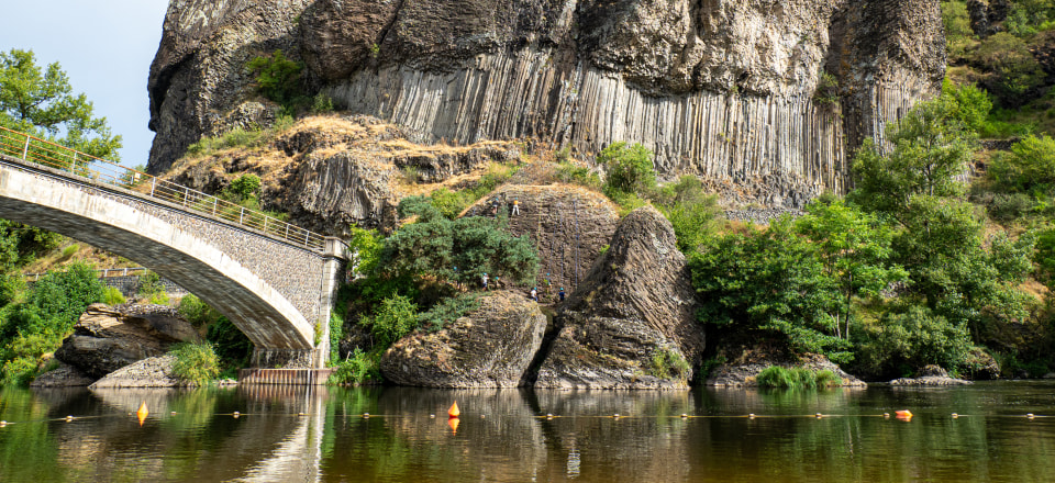 Entre rocher granitique et basaltique, quel que soit votre niveau, le moniteur vous initie ou vous fait progresser dans votre pratique de l'escalade. Le reste du temps vous profitez des séances de yoga pour vous détendre en pleine nature.