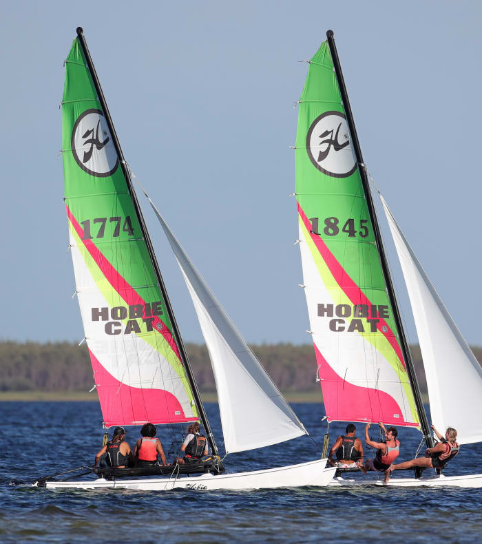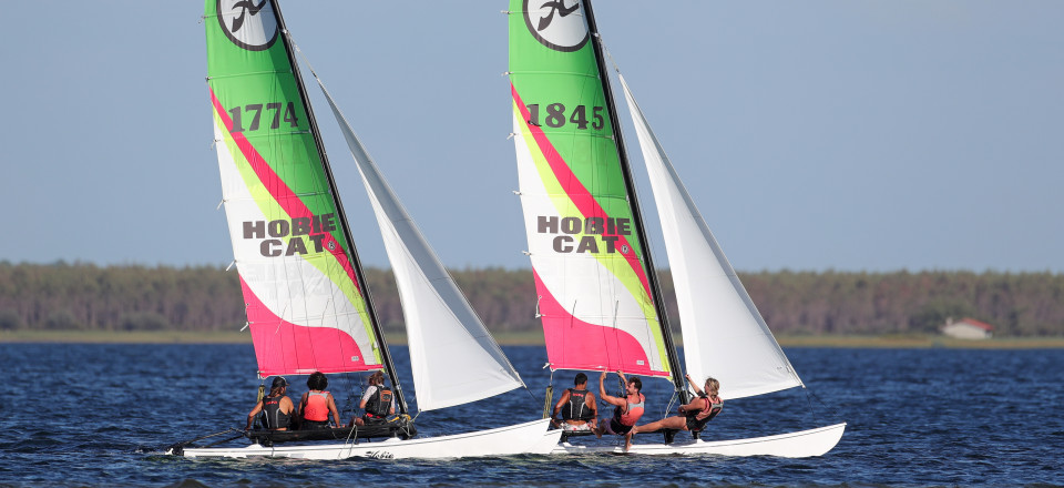 Lundi - Les conditions étant optimales, vous vous initiez ou vous perfectionnez en catamaran. Une fois les règles de sécurité et les bases énoncées, vous naviguez sur les eaux calmes du lac.