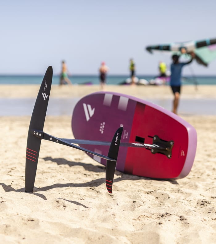 Une fois que vous arrivez à bien gérer sur une grande planche, l'objectif est de réussir à décoller sur des planches de wingfoil. En fonction des conditions, vous pourrez vous entraîner sur une planche de wingfoil en étant tracté par bateau.