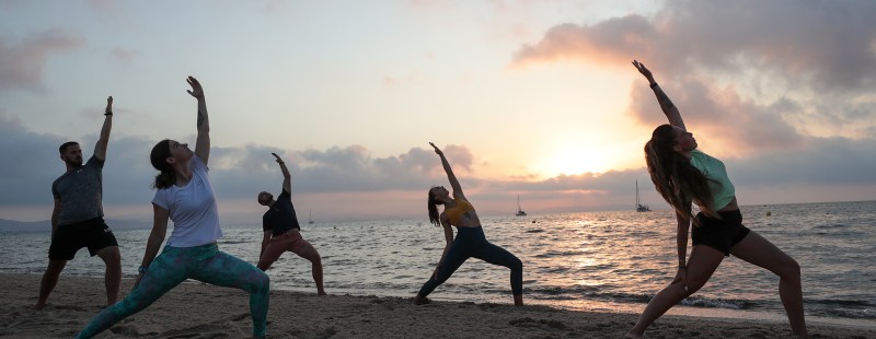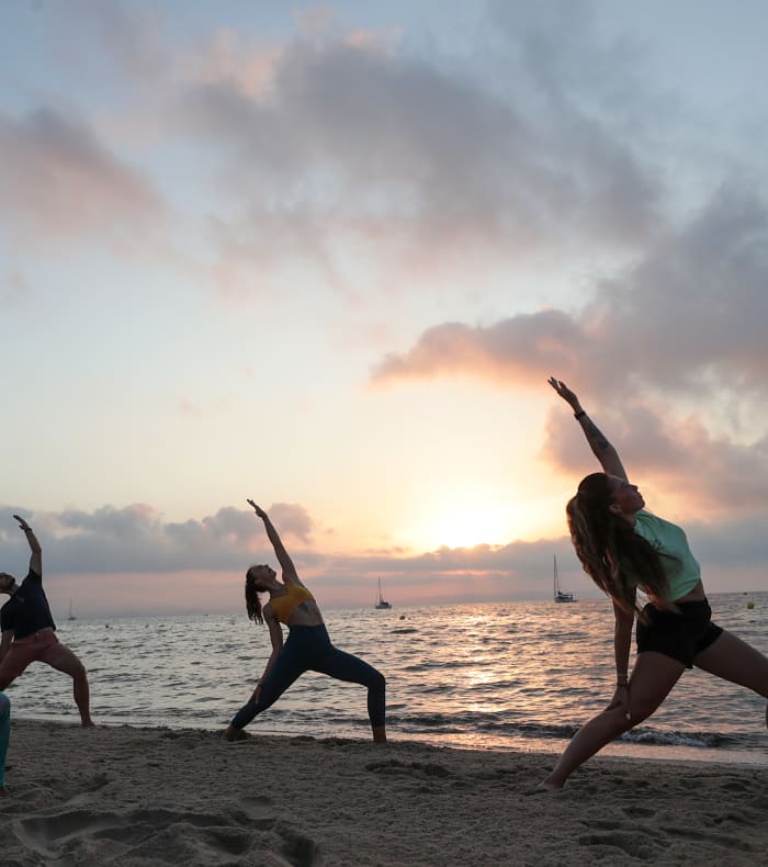 Pour le yoga, nous proposons des séances complètes de yoga pour une sensation de bien être profond. Vous pourrez pratiquer des postures, des exercices de respiration, de méditation et de la relaxation. Les séances se font en extérieur pour favoriser la reconnexion avec la nature sur la plage ou sous la pinède.
