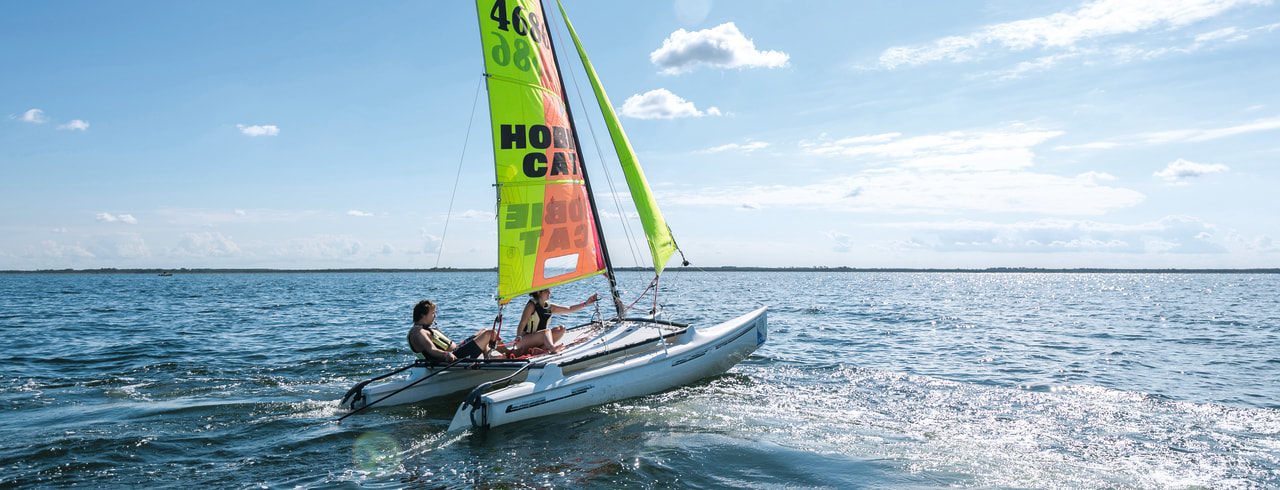 Ce programme est idéal pour découvrir ou vous perfectionner le temps d'un weekend au windsurf et au catamaran. Avec votre groupe et votre moniteur vous choisissez le support idéal en fonction des conditions météo. Vous naviguez sur le lac de Bombannes, flat et peu profond, l'idéal pour la pratique des sports de glisse!