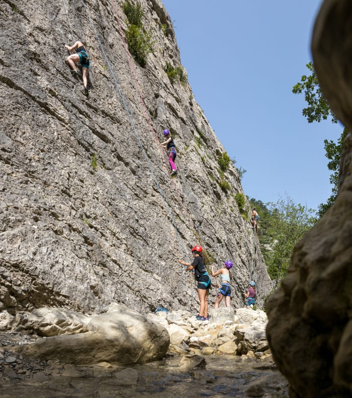 En cas de mauvais temps, les activités sont adaptées : pratique en salle, sur des falaises abritées, ou ajustement des horaires selon les conditions.