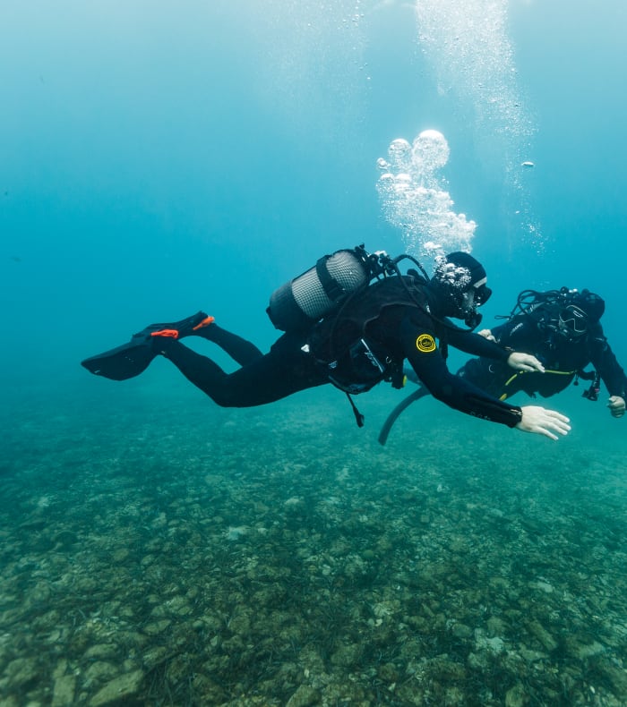 Les exercices seront accompagnés de plongées d'exploration pour apprendre à s'orienter sous l'eau et à gérer sa plongée en binôme. À la fin de la semaine, vous maîtriserez votre ventilation par rapport aux volumes pulmonaires et vous saurez gérer votre consommation. Lors des plongées, vous appréhenderez la profondeur tout au long de la semaine pour acquérir vous nouvelles compétences dans la zone 20-40m (À condition que les compétences en immersion, retour en surface - tenue du palier - et stabilisation soient acquises).