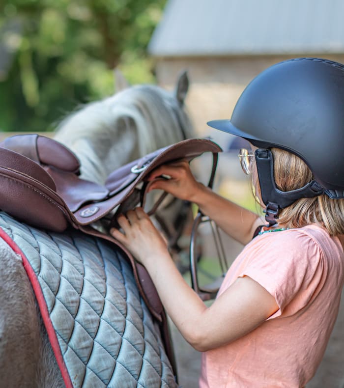 - Bombes, selles, filets, tapis, casques, matériel de pansage (possibilité d'amener son matériel personnel si souhaité).