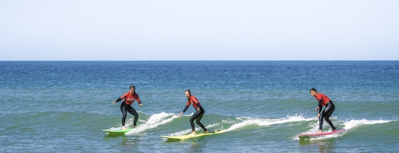 Lacanau est une destination surf de réputation internationale. Tous les ans, Lacanau accueille une compétition majeure de surf : le Lacanau Pro. Avec l'UCPA, vous bénéficiez d'une école de glisse les pieds dans l'eau, à proximité de la plage centrale de Lacanau Océan. Ici et depuis longtemps, surfer est une culture.