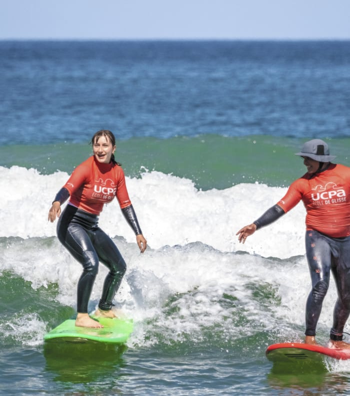 Pour les débutants : apprentissage des basiques, se redresser et surfer les premières vagues.
