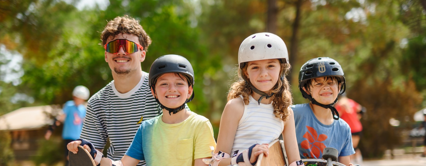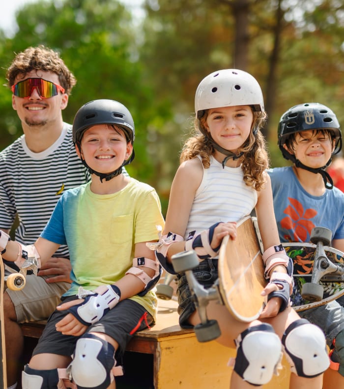 Pour le skateboard : planches et protections individuelles fournies.