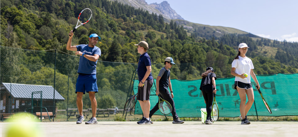 Sport' Camp/Ce séjour d'une semaine à Valloire est conçu pour les enfants de 11 à 14 ans afin de s'initier ou progresser en tennis tout en découvrant d'autres activités sportives.Au programme : 5 séances de tennis + 5 de multisports dont : 1 séance de trottinette à assistance électrique + 1 de laser game en extérieur + 1 de trottinette freestyle sur pump-track + 1 de carabine laser type biathlon + 1 de tir à l'arc + en complément, mini golf, basket, baseball, foot + animations, veillées, grands jeux ou ateliers manuels et créatifs.